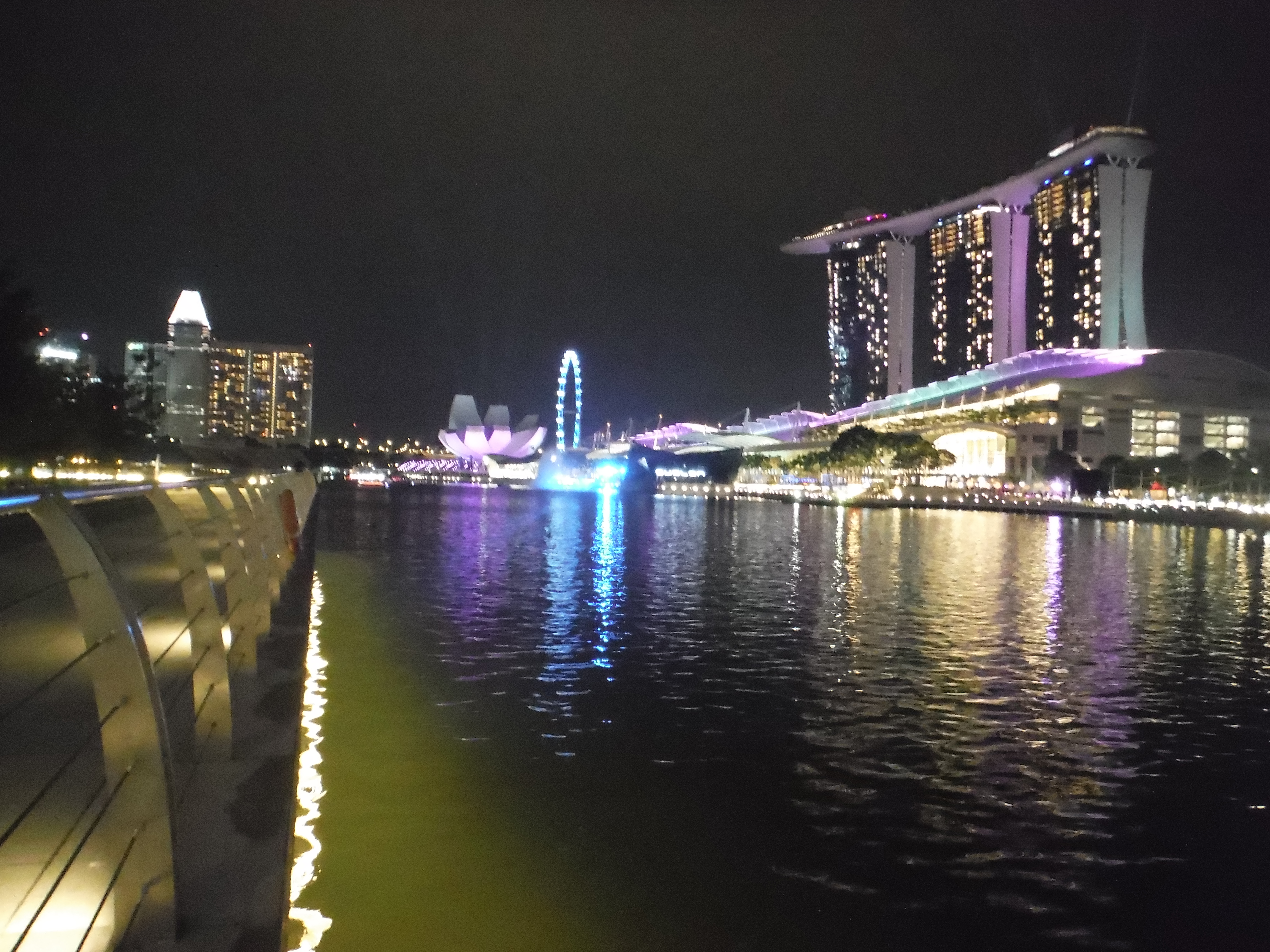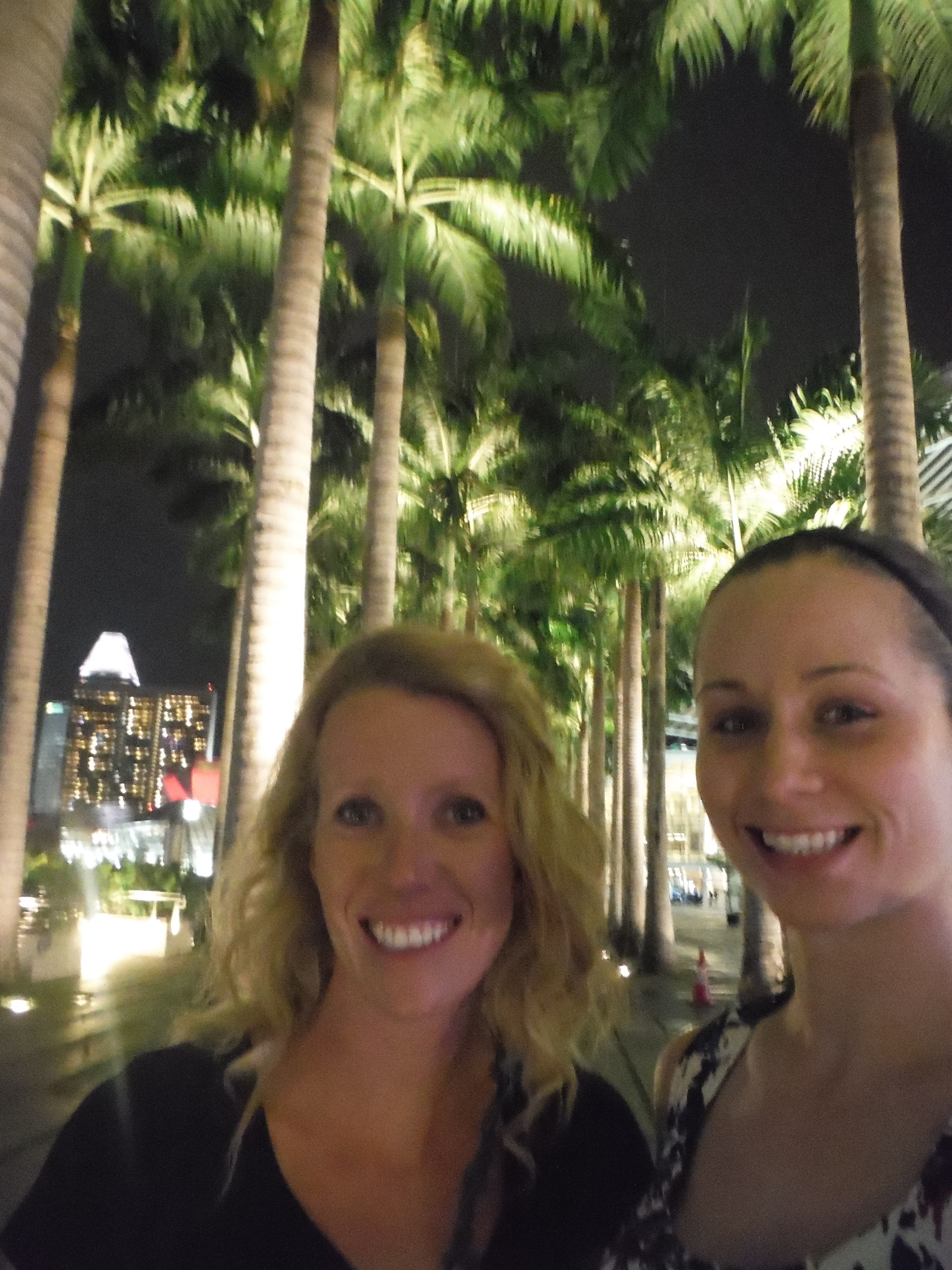 After showering and changing into our nicest, cleanest clothes we hopped back on the subway and headed to the downtown core. Singapore is not like the rest of Asia. It is incredibly modern and pricy and reminded me of what I think a warm and tropical New York would be like. Downtown there was a small lake surrounded by a pristine mall, perfectly manicured palm trees on the boardwalk, and restaurants overlooking the water where there was a light and fireworks show. We couldn’t afford to eat at any of the restaurants. In fact our food court mall meal cost over $10 each with no drink.