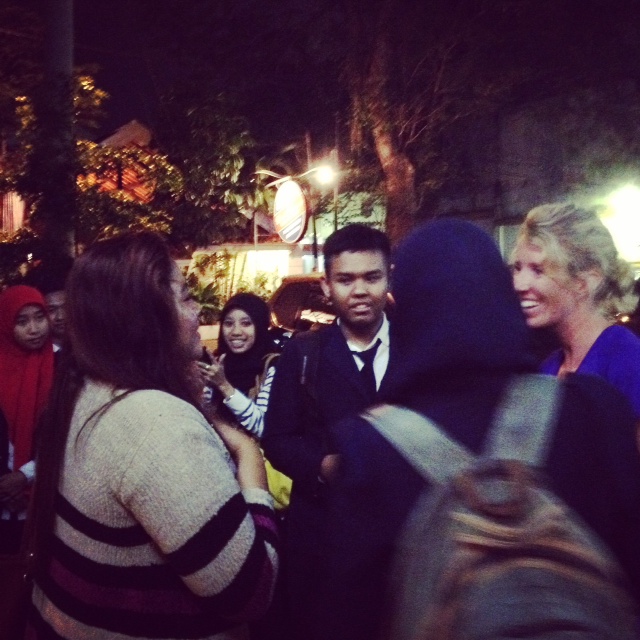 After a really solid nap and shower we made a plan for the next few days and were much more successful in finding a restaurant for dinner. Outside the restaurant some teenage locals approached and told us they, “Need to talk to, uh, people like you for our English project.” Due to Hobo M’s job, she cannot be videotaped but as a teacher I felt compelled (and secretly a nerdy excitement) to assist these students. We must have been the only Westerners in town because once I agreed to help the students started calling all their friends and suddenly teenagers everywhere were showing up on scooters looking for the one Westerner who was willing to assist with their project. Basically, the project was for their English Conversation class so they just needed to be videotaped talking in English to someone who’s native language is English. It was actually lots of fun and by the end they had me proudly singing Oh Canada. Perhaps I’ll be an Indonesian youtube sensation in the near future, haha.